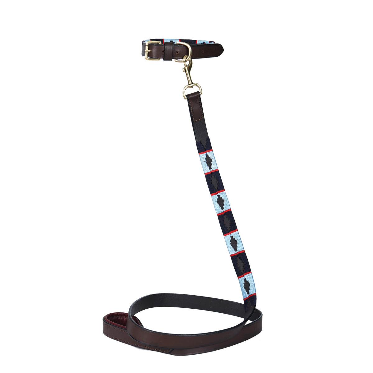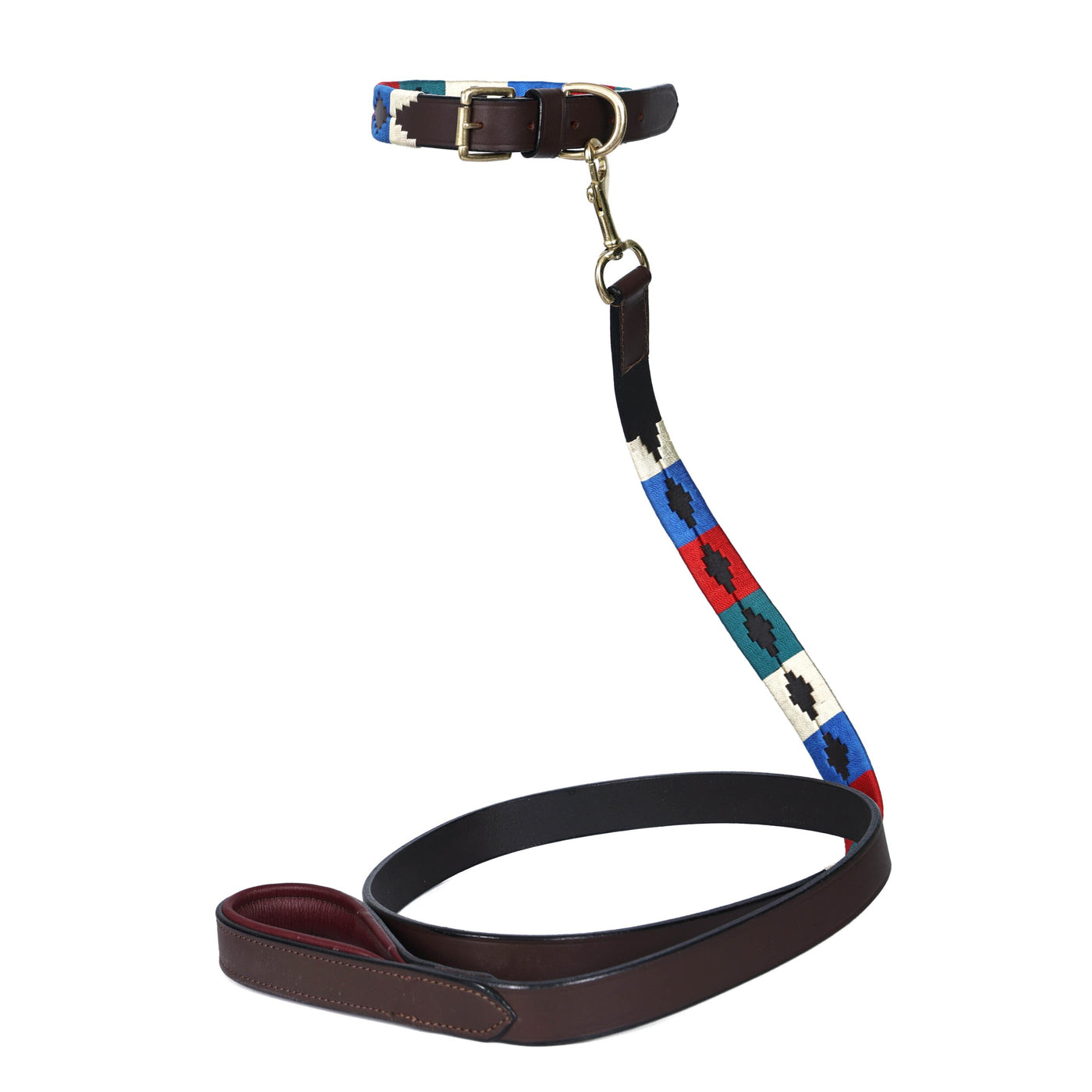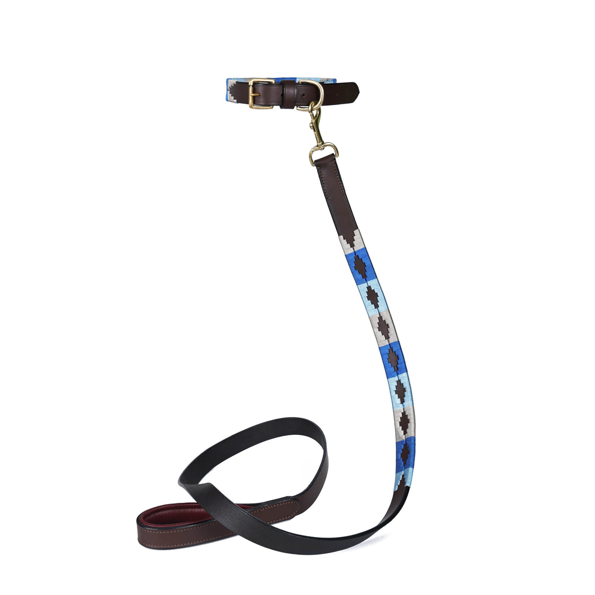 - Polished brass buckle (collar)